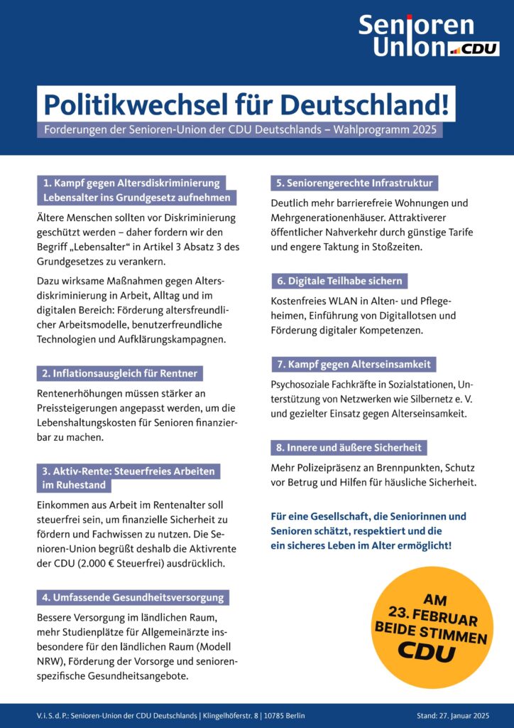 Die Politik der Seniorenunion orientiert sich am Leitbild der „Partnerschaft der Generationen“.